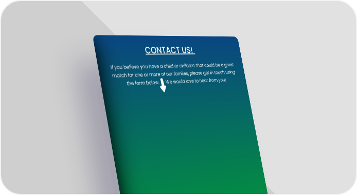 CONTACT US! If you believe you have a child or children that could be a great match for one or more of our familes, please get in touch using the form below. We would love to hear from you!