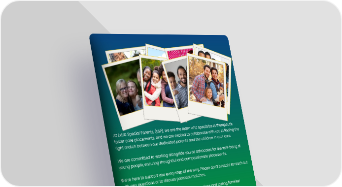 At Extra Special Parents, (ESP), we are the team who specialize in therapeutic foster care placements, and we are excited to collaborate with you in finding the right match between our dedicated parents and the children in your care. We are committed to working alongside you as advocates for the well-being of young people, ensuring thoughtful and compassionate placements. We’re here to support you every step of the way. Please don’t hesitate to reach out with any questions or to discuss potential matches. Let’s work together to create meaningful connections and lasting families! Warmest regards Wil Brown Nikki Collinson-Phenix Brittany Rosa Have a question? Email Us!